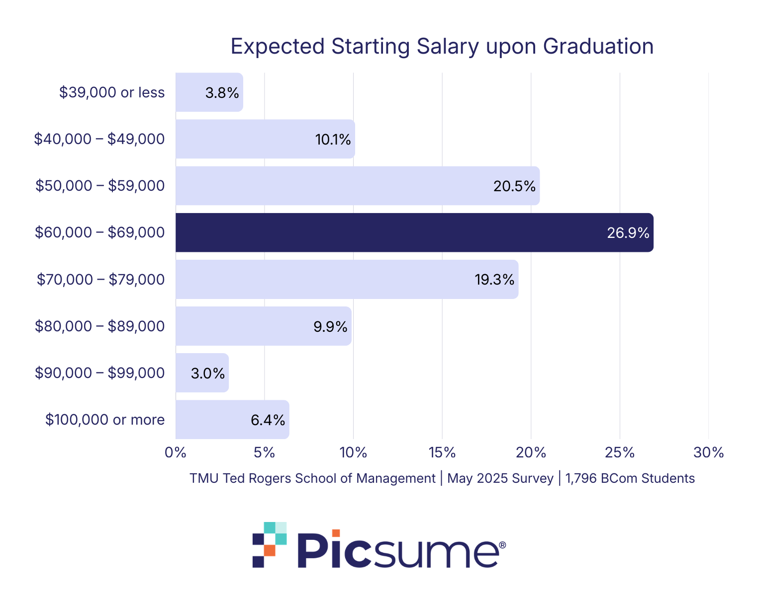 A 2025 student poll by the Ted Rogers School of Management at Toronto Metropolitan University surveyed 1,796 BCom students across 12 programs on one question: Upon graduation, what starting salary do you expect?